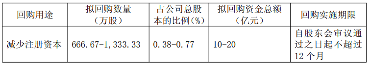 同日,赛力斯董事会通过议案,公司拟通过集中竞价交易方式回购公司已经发行的人民币普通股(A 股)股票,并用于减少公司注册资本,回购价格上限为150元/股,预计回购金额10亿元~20亿元,资金来源为自有资金。