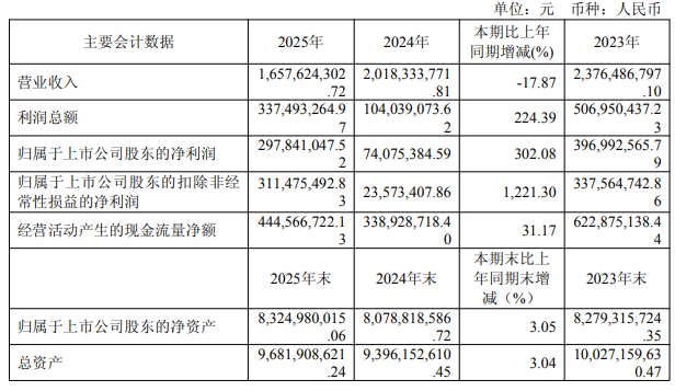 【大河财立方消息】3月30日,北京昭衍新药研究中心股份有限公司(公司简称:昭衍新药)2025年年度报告。公司2025年实现营业收入16.58亿元,同比下降17.87%;归属于上市公司股东的净利润2.98亿元,同比增长302.08%;基本每股收益0.4元。