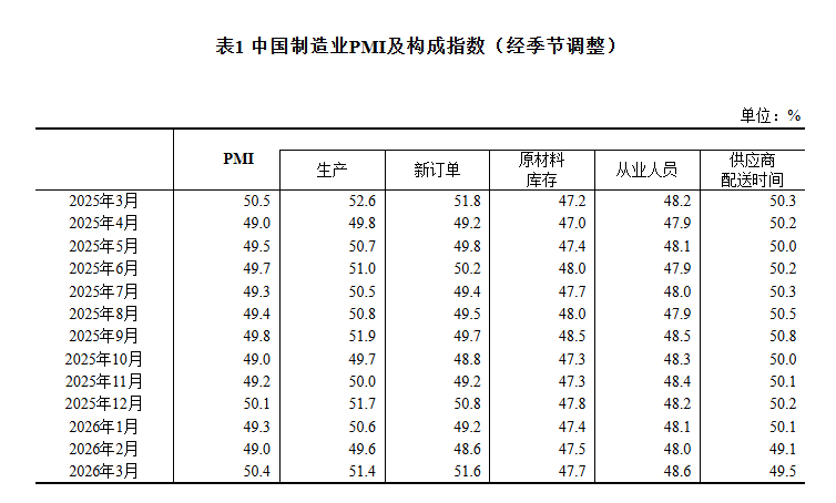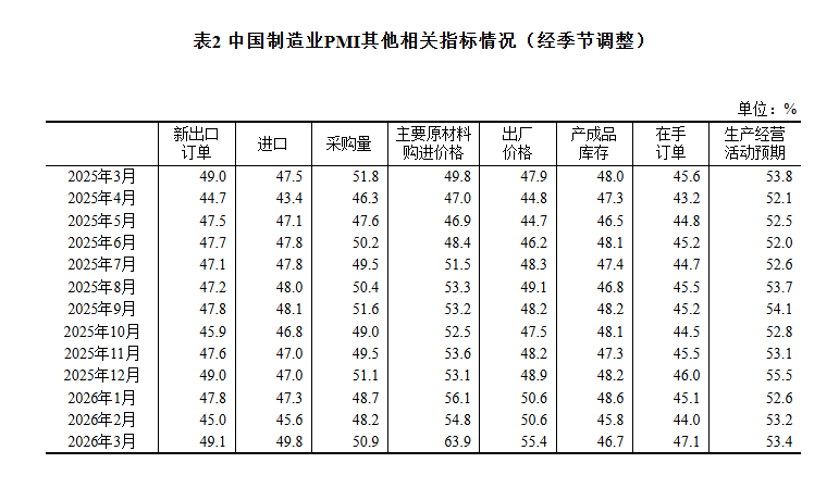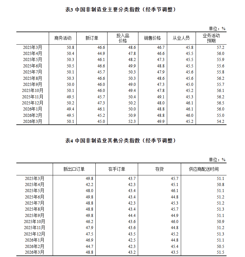 【大河财立方消息】3月31日,国家统计局发布2026年3月中国采购经理指数运行情况。