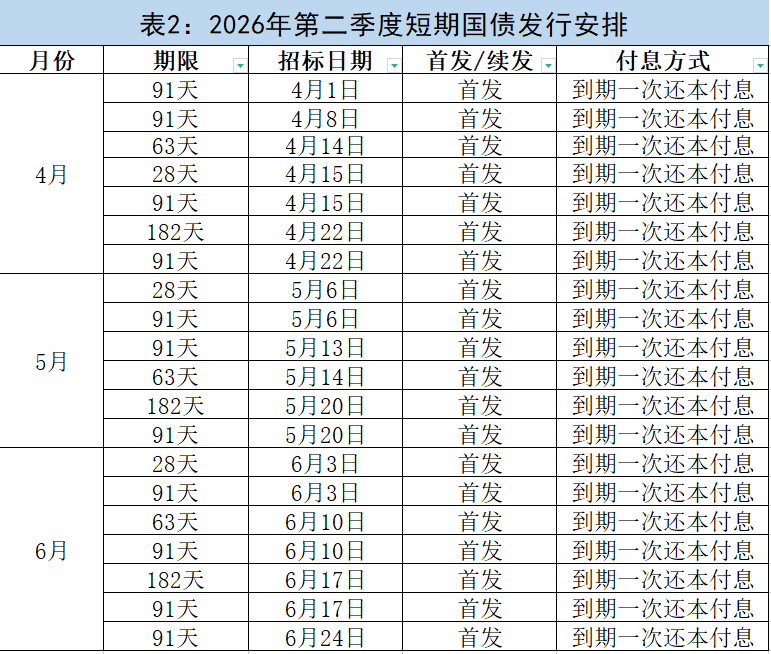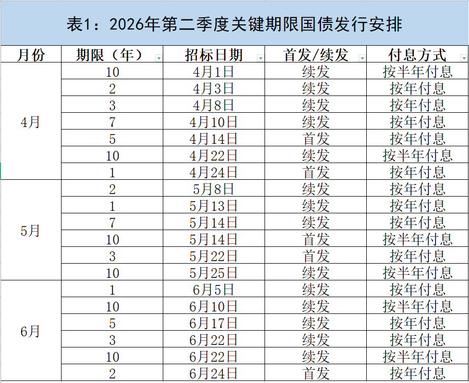 财政部公布2026年第二季度国债发行计划