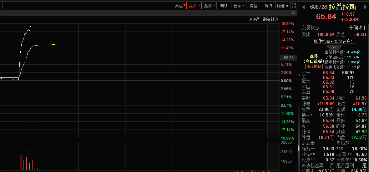 4月1日盘中,拉普拉斯股价直线拉升至20%涨停。