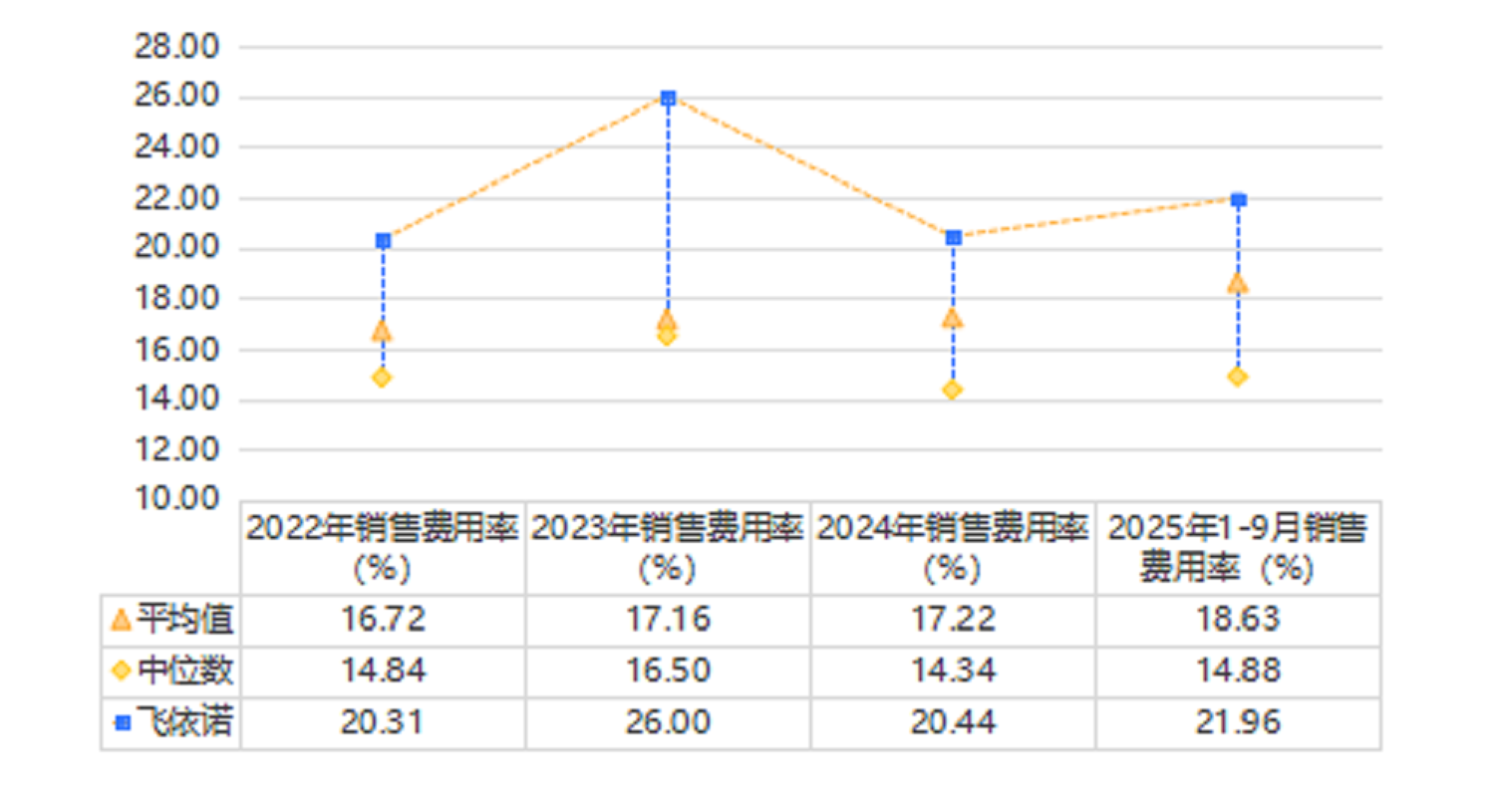 高度依赖经销商模式下,飞依诺的销售费用率却高于同行业上市公司平均水平。2022—2024年及2025年1—9月,除开立医疗外,迈瑞医疗、祥生医疗和超研股份的销售费用率均处于20%以下,而同期飞依诺的销售费用率均高于20%,主要系由于公司尚处于成长期,需加大销售推广力度来扩大销售规模所致。
