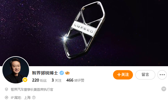 4月2日,智界汽车官宣,任命郭锐为董事长兼首席执行官,全面负责公司经营管理工作,即日起生效。郭锐本人也通过微博发文确认了这一消息。