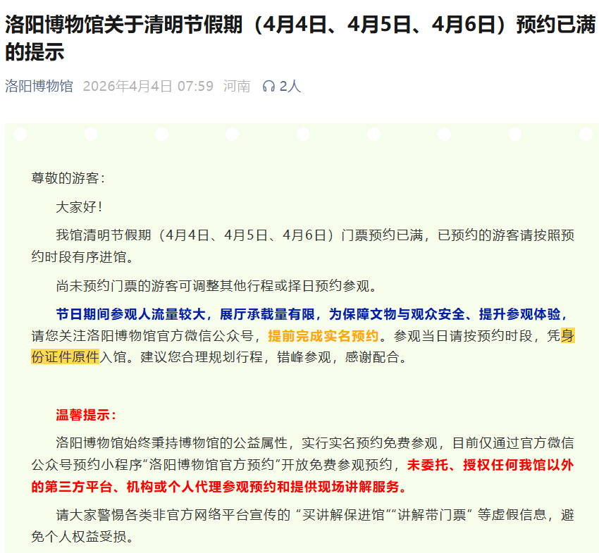 洛阳博物馆限流公告
