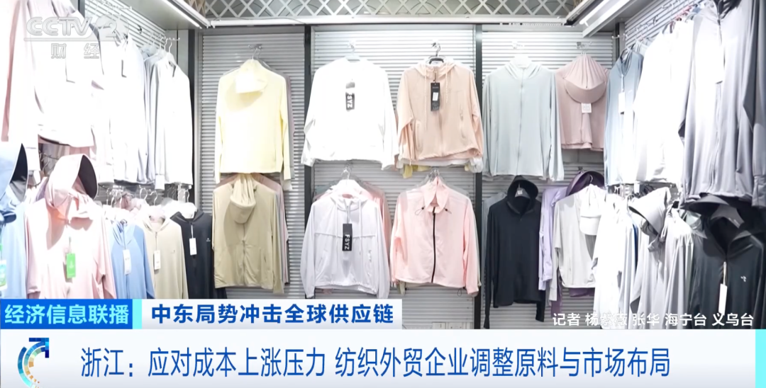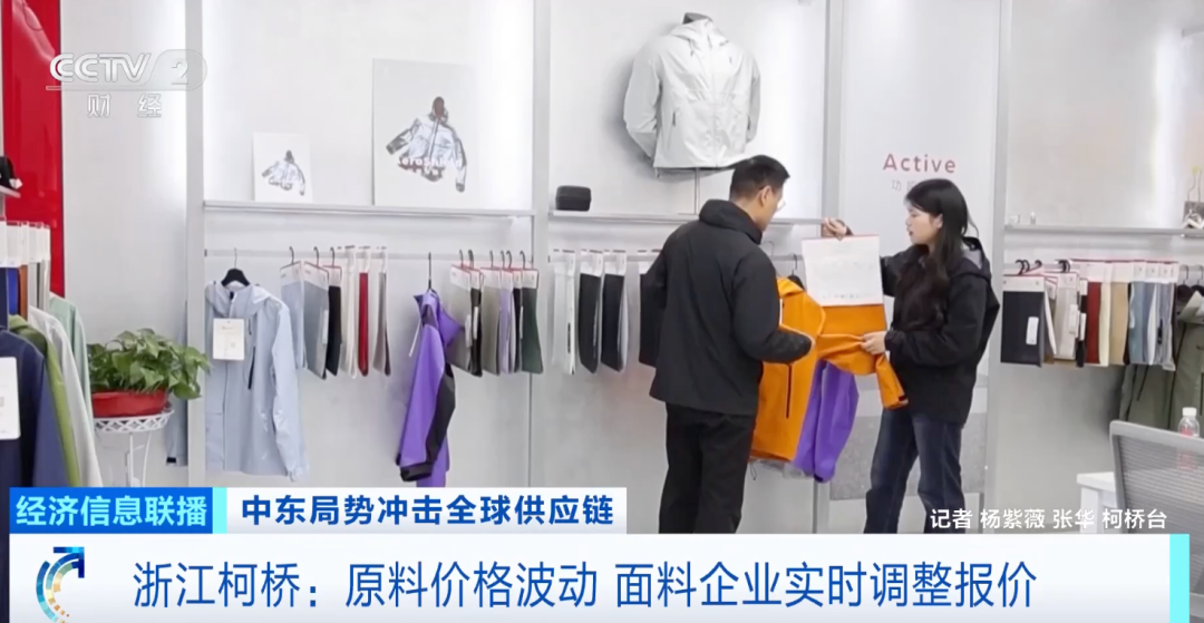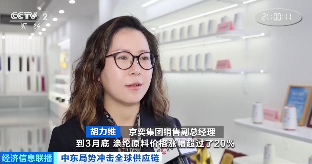 总台央视记者杨紫薇:随着原油的上涨带动合成纤维涨价,整体涤纶的价格在近一个月内上涨超10%。