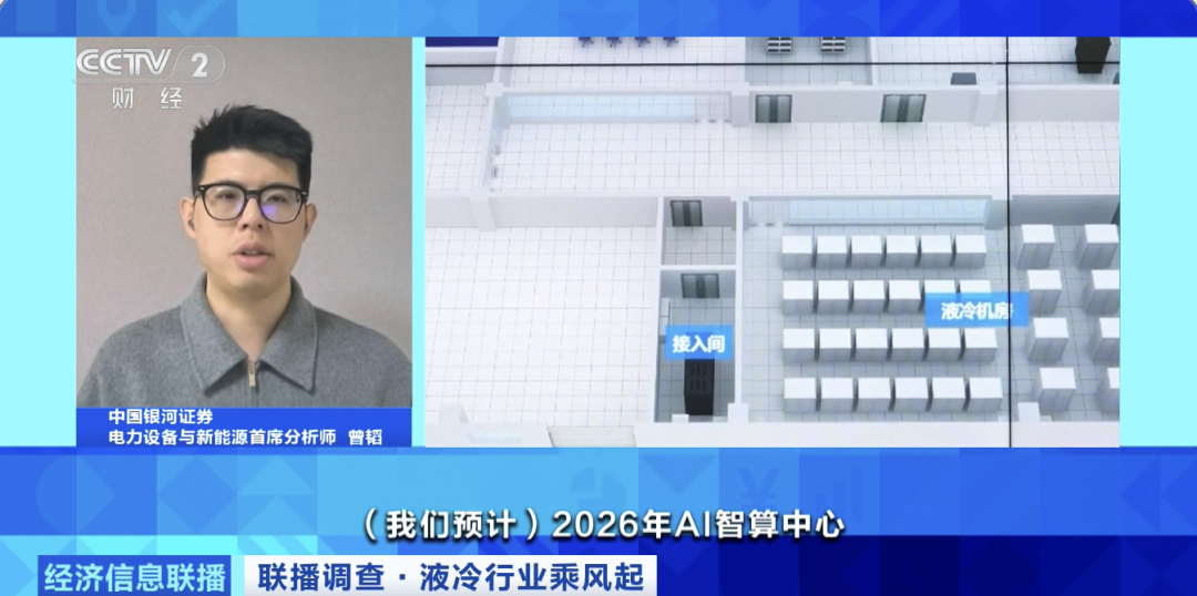 中国银河证券电力设备与新能源首席分析师 曾韬:我们预计2026年AI智算中心液冷市场规模会达到200亿元,服务器、云计算液冷市场规模约为80亿元到100亿元,传统行业液冷市场规模约为20亿元,2026年中国液冷服务器市场总规模会超过300亿元。