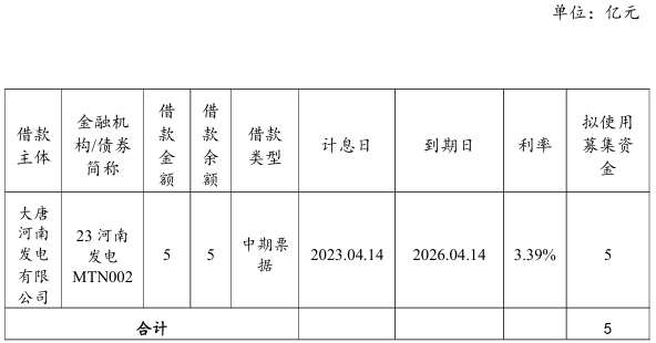 本期债券发行金额5亿元,期限3年,募集资金用于偿还发行人存量债务融资工具“23河南发电MTN002”。