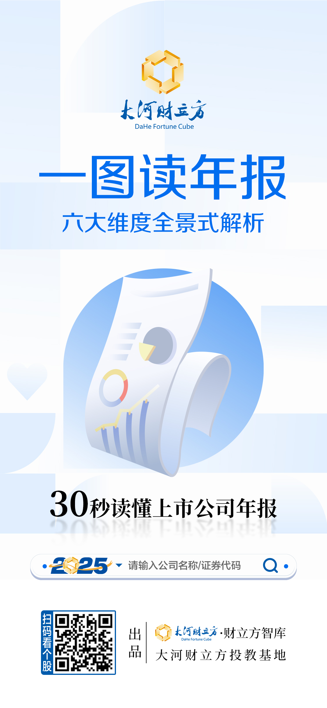 作为深耕财经垂直领域的专业媒体,大河财立方今年继续升级“一图读年报”数字智库产品。通过Wind金融终端、立方舆情通大数据系统等,构建包含盈利能力、营运能力、成长能力、偿债能力、投资收益、股东情况在内的六大维度分析体系,为投资者提供全景式的上市公司经营画像。