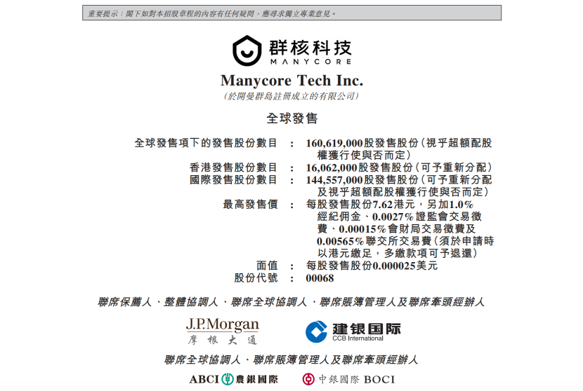 4月9日,Manycore Tech Inc.(以下简称“群核科技”)披露全球发售文件,启动招股,至2026年4月14日结束,并计划于4月17日正式以“00068”为股票代码在港交所挂牌上市。