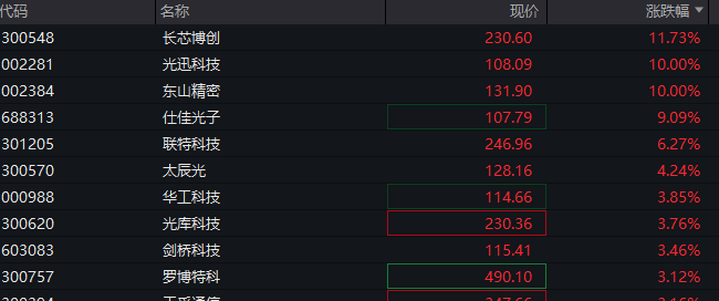 4月9日午后,算力硬件概念持续拉升,仕佳光子一度涨超13%,创历史新高,光迅科技、东山精密此前涨停,特发信息、长飞光纤涨超5%。中际旭创盘中一度涨1.72%,报699.99元/股,股价再创新高。