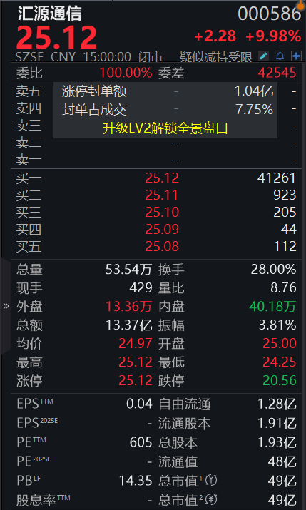 【大河财立方消息】4月9日,四川汇源光通信股份有限公司(简称汇源通信)公告称,公司股票交易价格于2026年4月7日、4月8日、4月9日连续三个交易日内收盘价格涨幅偏离值累计超过20%,根据有关规定,属于股票交易异常波动的情况。此前,在4月2日、3日两个交易日内,公司股票已出现同样情形,涨幅偏离值累计也超过20%。