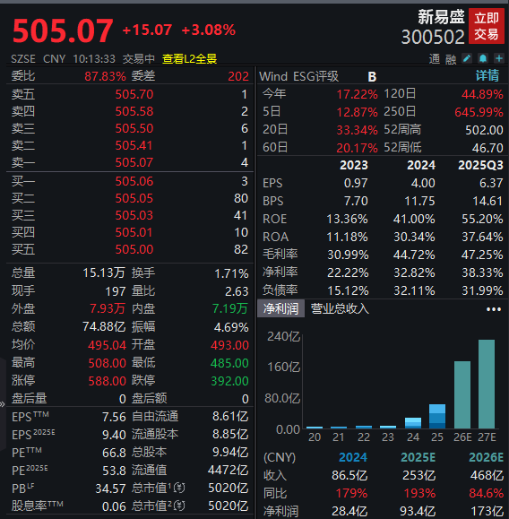 新易盛此前披露的业绩预告显示,预计2025年归母净利润为94亿元~99亿元,同比增长231.24%~248.86%。对于业绩增长的原因,新易盛表示,报告期内,公司受益于算力投资持续增长,高速率产品需求快速提升,公司预计销售收入和净利润较上年同期大幅增加。
