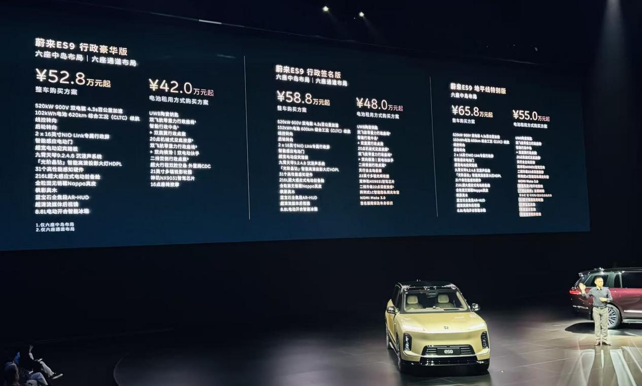 【大河财立方 记者 陈薇】凭借ES8的热卖,2025年第四季度蔚来实现了首个季度盈利。尝到纯电大车市场的甜头后,4月9日蔚来在杭州正式发布ES9。这台车身比劳斯莱斯库里南更宽更长的旗舰车型,官方预售价52.8万元起;若采用BaaS电池租用方式购买,预售价则低至42万元起。