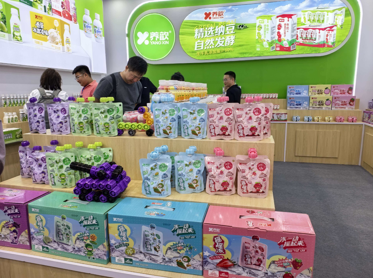 养歆食品源自江苏徐州,以乳酸菌业务起家,2019 年从 OEM 代工转型,创立独立品牌并搭建自有产品体系。为精准对接本届展会的订货商群体,该公司展台特意复刻街头水果零售店风格,从色彩搭配到货架展陈均贴合渠道场景。