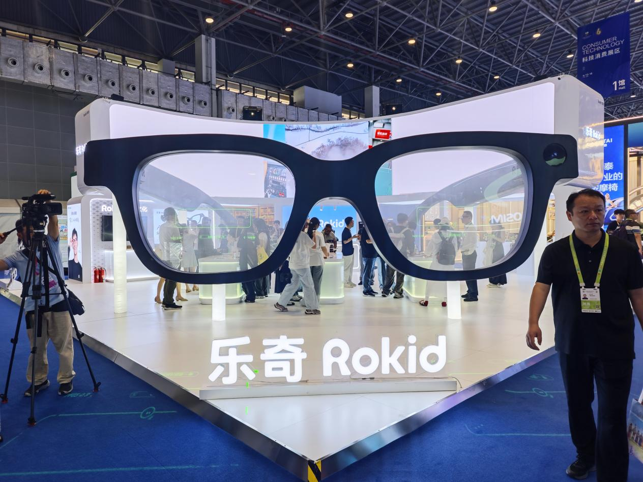 同样在1号馆,一副醒目的黑框眼镜装置占据了乐奇Rokid展区将近一半的空间,AI眼镜就是该展区的拳头产品。工作人员告诉大河财立方记者,作为已实现量产的全球最轻全功能“AI+AR”眼镜,乐奇AI眼镜外观与普通眼镜一样,真正实现全天候舒适佩戴。