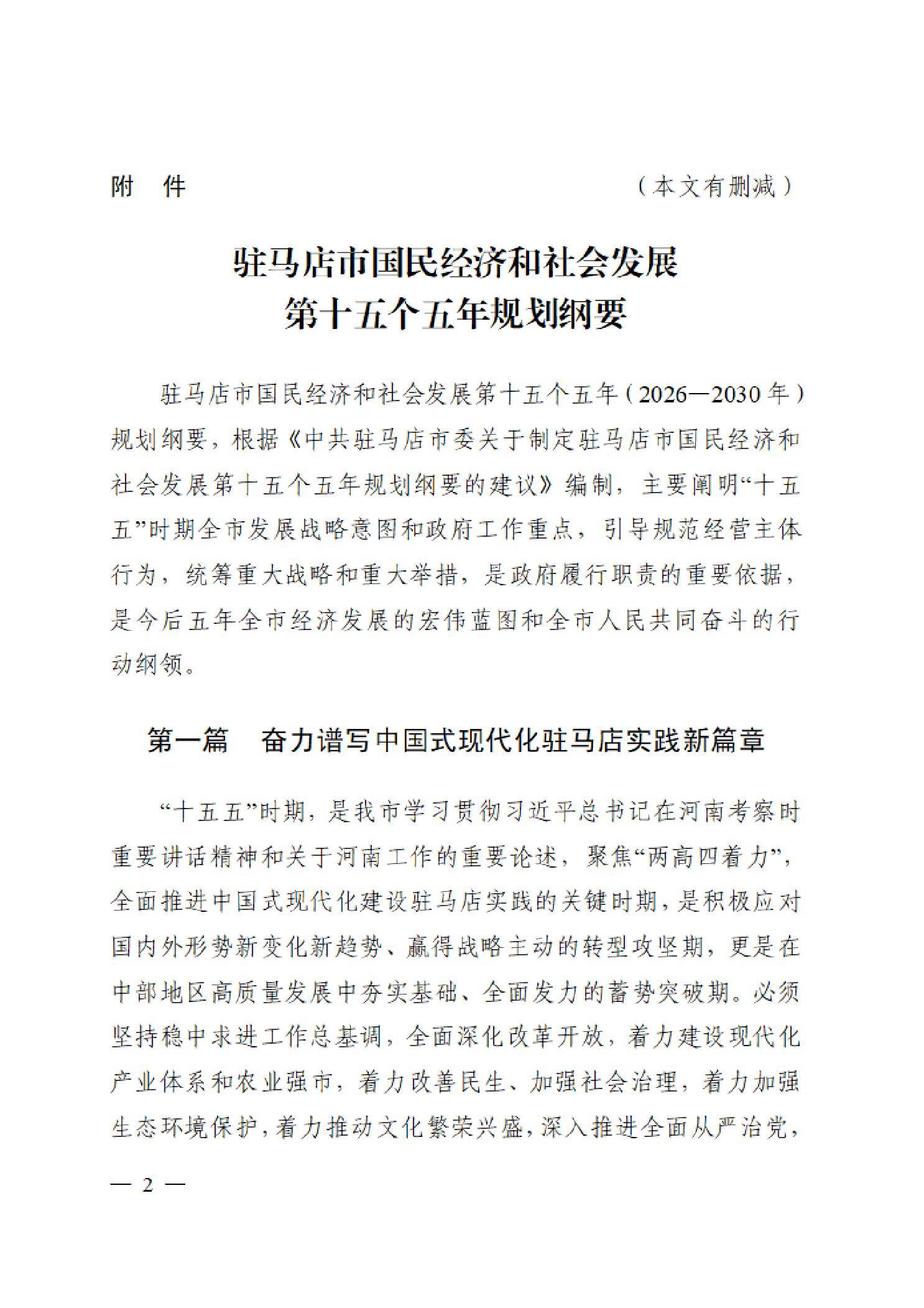 【大河财立方消息】近日,驻马店市人民政府印发《驻马店市国民经济和社会发展第十五个五年规划纲要》。