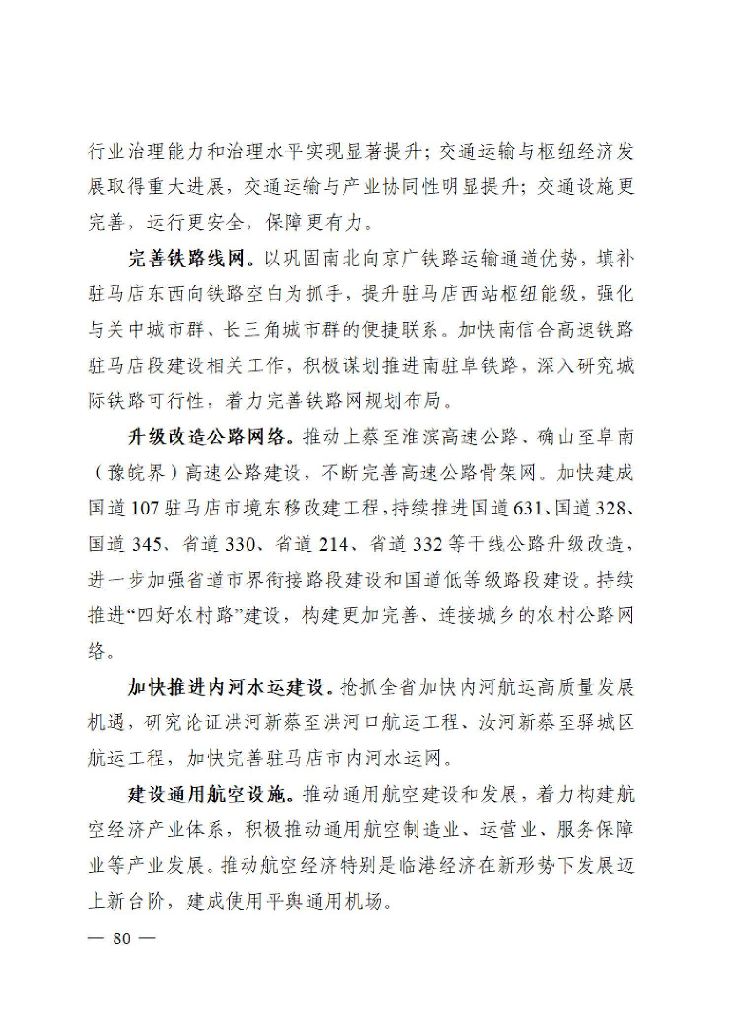 抢抓全省加快内河航运高质量发展机遇,研究论证洪河新蔡至洪河口航运工程、汝河新蔡至驿城区航运工程,加快完善驻马店市内河水运网。