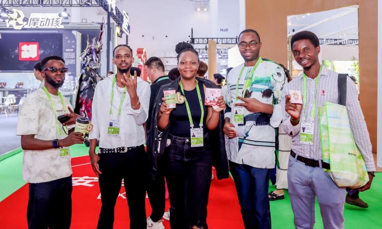 为回馈现场消费者,爷爷不泡茶还附赠限定“显眼包”等文创周边与互动福利。一些外国游客品尝爷爷不泡茶产品、参与互动获得“显眼包”等文创周边后,专门在展台合影留念。