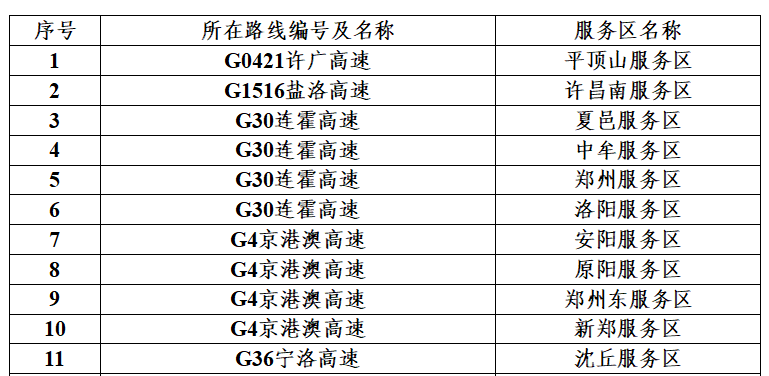 预测可能出现拥堵的服务区有:郑州服务区、郑州东服务区、平顶山服务区、许昌南服务区、洛阳服务区、安阳服务区、原阳服务区等。