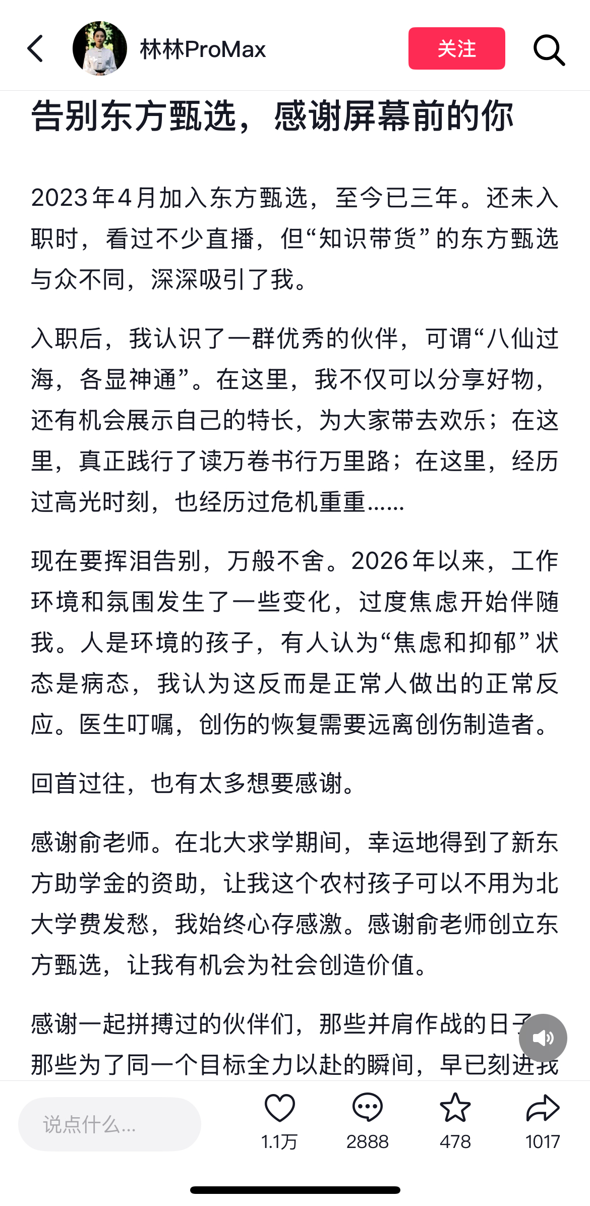 【大河财立方消息】4月25日,东方甄选4名主播明明、天权、中灿、林林陆续在个人社交平台发文,宣布离开东方甄选。4名主播均提到不适应过去几个月公司的变化,还有人因此感到焦虑、内耗。同时,他们也都感谢了俞敏洪。